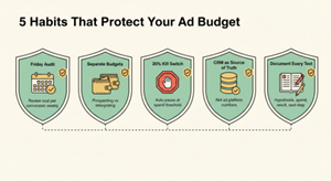 Audit your spend every Friday. Weekly reviews catch waste before it compounds. Look at cost per conversion, not cost per click. Kill anything that has spent 3x your target CPA without converting.